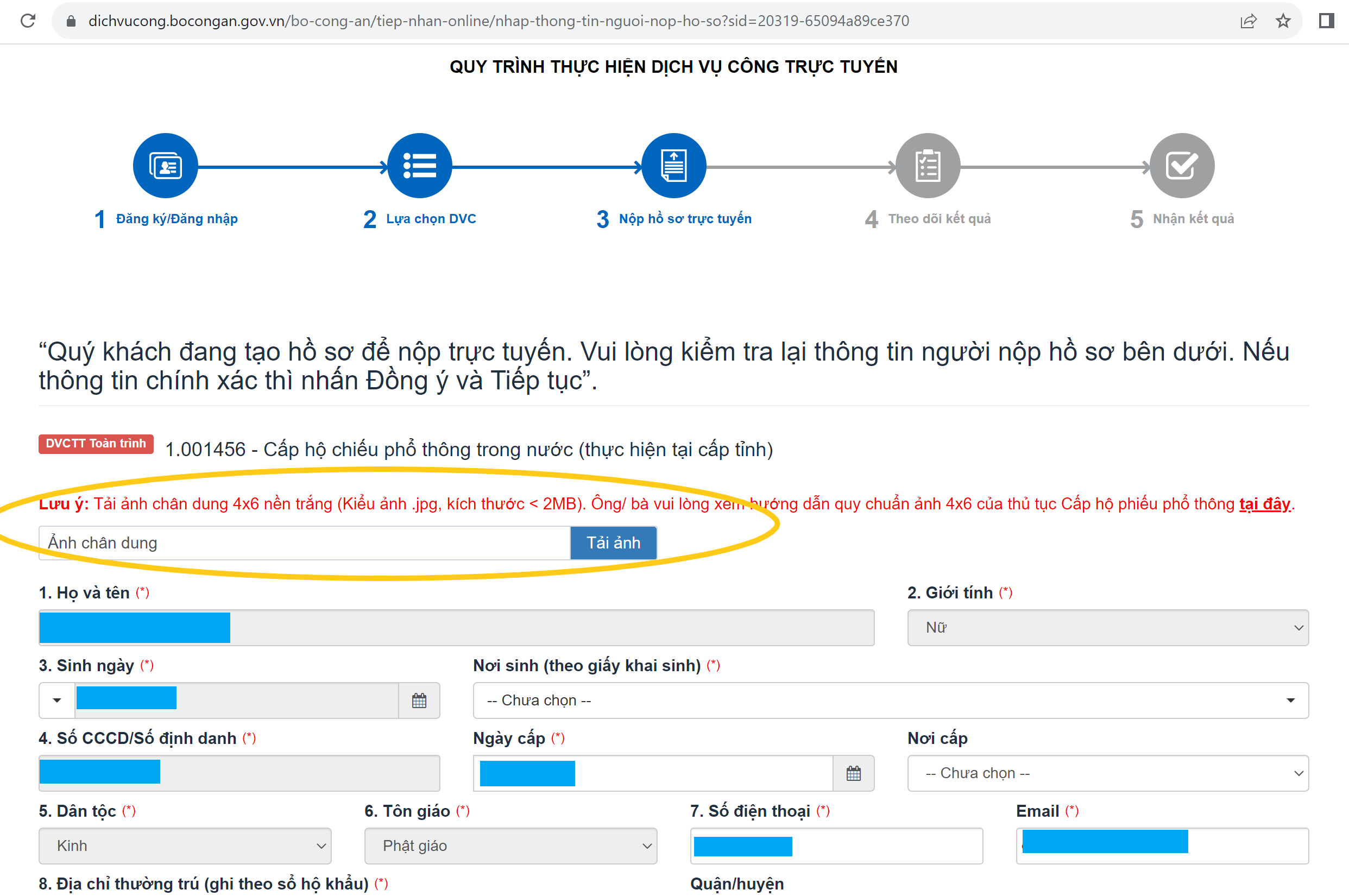 Tại trang điền thông tin cá nhân này, Q có một lưu ý nhỏ. Đó là bạn không nên up hình trước. Nghĩa là: Bạn hãy điền toàn bộ thông tin ở các ô trống phía dưới, sau khi hoàn tất việc khai thông tin, bạn mới hãy tải hình lên. Như vậy trang web sẽ không bị load và chờ lâu.