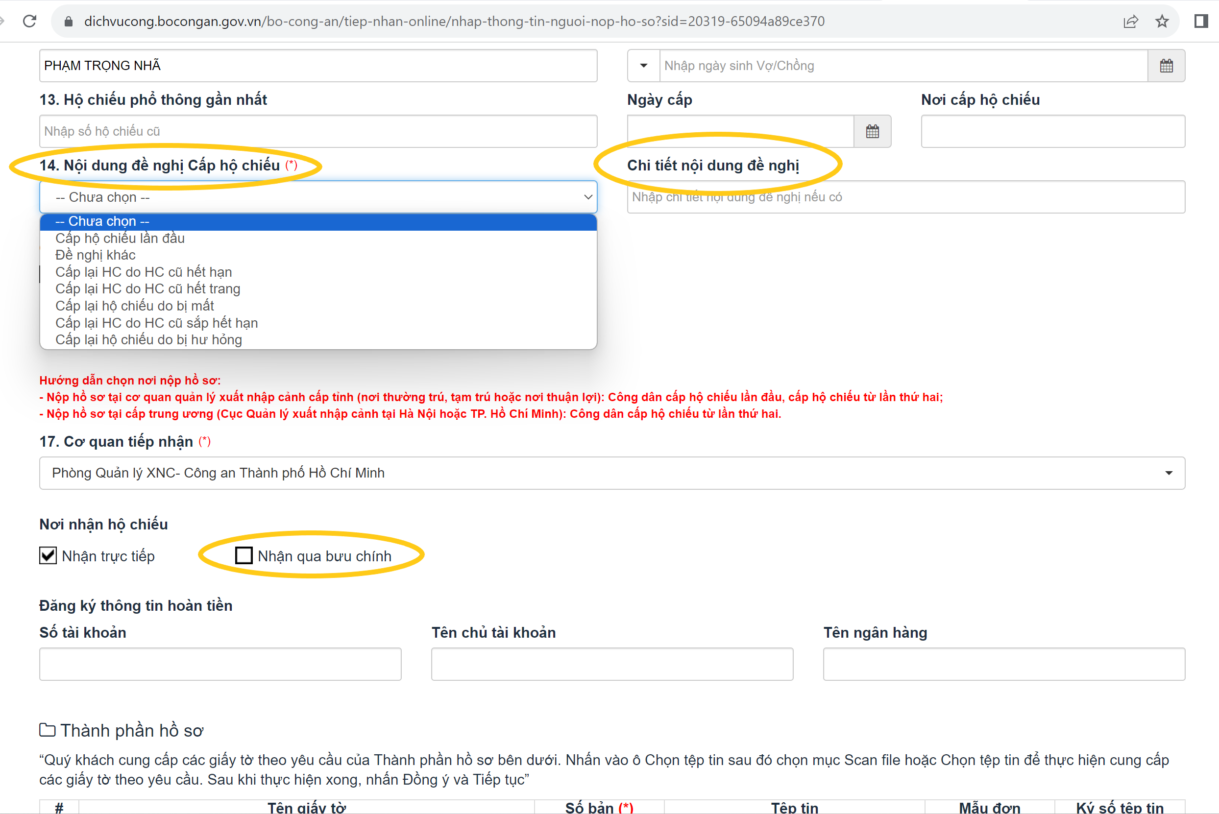 Thêm một lưu ý nữa, ở mục Nơi nhận hộ chiếu, bạn nên chọn Nhận qua bưu điện nếu bạn không cần gấp. Vì khi nhận qua bưu điện chỉ trễ hơn ngày nhận trực tiếp một ngày nhưng bạn không phải đến xếp hàng và chờ đợi lấy. Có khi bữa đó đông quá, chờ đến hết giờ làm việc cũng chưa đến lượt bạn, lại phải quay lại vào ngày mai.